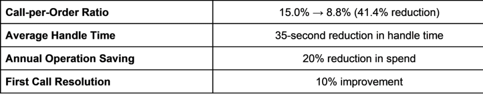 But the numbers only tell part of the story. Customer experience improved dramatically – customers could now self-serve common requests, get faster resolutions when they did call, and avoid the frustration of technology barriers.